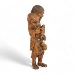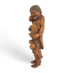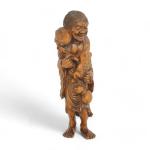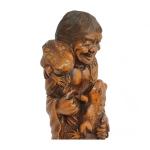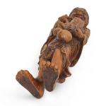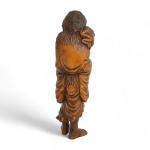 Japon, période Meiji (1868-1912) Grand sujet en buis de belle patine représentant Gama Senin. Les yeux du crapaud incrusté de corne. H. 37 cm