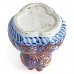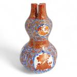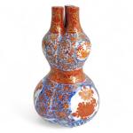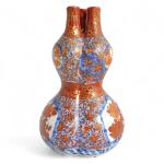 Japon, période Taisho Triple vases coloquintes, en porcelaine imari à décor en bleu, rouge et rehauts d'or de fleurs en médaillons sur fond de fleurs. H. 19 cm