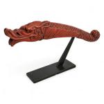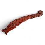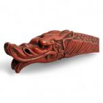 Japon, XIXe "Senryuzutsu" en bois laqué rouge, reprenant la forme d'un dragon. L. 23 cm Provenance: ancienne étiquette de la galerie Mingei