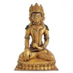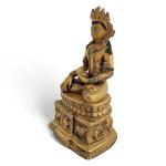 Tibet, circa 1920 Statuette en bronze, représentant Akshobhya, paré et couronné, assis sur un socle géométrique, la main droite en bhumisparsha mudra, la main gauche en dhyanamudra tenant le bol à aumône. H.18 cm