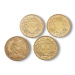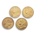 3 PIECES de 20 francs Suisse 1930-1935-1947 et 1 PIECE de 20 francs au coq 1906 Vendu sur désignation, lot conservé en banque
