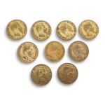 9 PIECES de 10 francs or (1855, 1856, 1857, 1859 x2, 1860, 1865, 1867, 1907) Lot vendu sur désignation conservé en banque