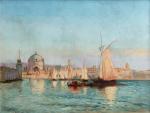 J. BALDINI ou BALDINY (XIXème) Venise, 1895. Constantinople, 1899. Paire d'huiles sur toile signées, situées et datées 49 x 65 cm (petites restaurations)