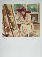 André DUNOYER DE SEGONZAC (1884-1974) Le peintre à son chevalet Lithographie signée et justifiée 80/100 en bas 76...