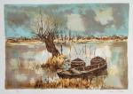 Pierre LETELLIER (1928-2000) Paysage à l'étang Lithographie signée et justifiée 38/200 en bas 48 x 66 cm