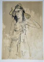 Jean JANSEM (1920-2013) La fille au violon Lithographie signée et justifiée 117/120 en bas 76 x 54.5 cm (légères piqûres)