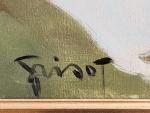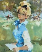 Pierre GRISOT (1911-1995) Jeune femme aux courses hippiques Huile sur toile signée en bas à gauche 55 x 46 cm