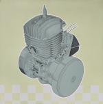 Pol GACHON (né en 1943) Moteur sur fond vert Acrylique sur toile en diptyque 80 x 80 cm et 27 x 41 cm