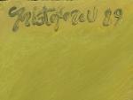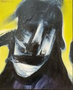 John CHRISTOFOROU (1921-2014) Guerrier au casque sur fond jaune, 1989. Huile sur toile signée et datée en haut à gauche, titrée et datée au dos 73 x 60 cm