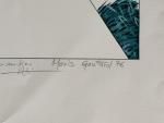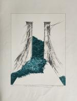 Moris GONTARD (né en 1940) Le pont, 1976. Lithographie signée et datée en bas à droite, justifiée 53/70 en bas à gauche, dédicacée "A Jean et Jeannette Branchet avec mes amitiés" en bas au centre 65 x 50 cm