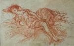 ECOLE FRANCAISE fin XIXème Femme allanguie Dessin à la sanguine, porte une signature "Degas" en bas à droite 17 x 27 cm à vue