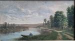 Alfred Joseph DANNEQUIN (?-1890) Paysage animé Huile sur toile signée en bas à gauche 27 x 46 cm