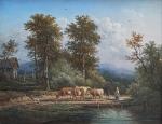 Victor DE GRAILLY (1804-1889) Le passage des vaches Huile sur toile signée en bas à droite 50 x 65 cm (restaurations)
