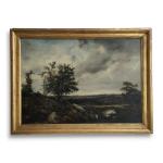 Ecole française de la fin du XIXème siècle Paysage animé Huile sur toile 48 x 67 cm (rentoilage, restauration)