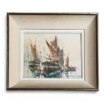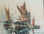 Georges CHAPPUIS (1920-2010) Cannes, tartanes dans le port Aquarelle signée en bas à droite, située au dos du montage 31.5 x 40 cm à vue