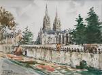 Jean-Louis LE TOULLEC (1908-1999) Quimper, la cathédrale Aquarelle signée en bas à gauche 27 x 37 cm à vue