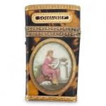 ETUI Souvenir d'amitié en écaille, or et métal doré, à décor de deux miniatures XIXème 8.5 x 5.1 cm (restaurations à la charnière, la monture à refixer)