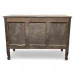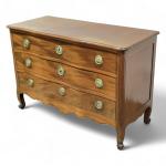 COMMODE nantaise en acajou sculpté et mouluré, ouvrant à trois rangs de tiroirs, la façade de forme anguille Travail de port, Nantes, époque Louis XV H.: 86 cm l.: 124.5 cm P.: 52.5 cm