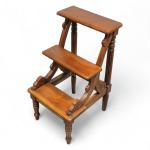 ESCABEAU DE BIBLIOTHEQUE en bois naturel sculpté et mouluré, à trois marches H.: 81 cm l.: 44 cm P.: 50 cm