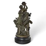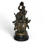 Pierre Alexandre SCHOENEWERK (1820-1885) Bacchante faisant danser un enfant Bronze patiné, signé et marque de fondeur "Delafontaine" H.:...