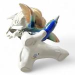Karl ENS (1802-1865) Oiseau en porcelaine à décor polychrome, signé H.: 30.5 cm (légère égrenure)