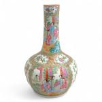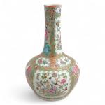 CHINE Canton Vase bouteille en porcelaine à décor polychrome et or H.: 34 cm (fêles)