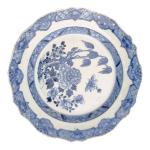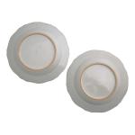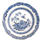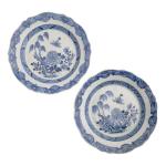 CHINE Paire d'assiettes rondes en porcelaine à décor naturaliste en camaïeu bleu XVIIIème D.: 23 cm (petits éclats)