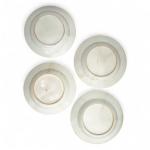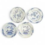 CHINE Quatre assiettes rondes en porcelaine à décor bleu blanc XVIIIème D.: 23 cm (petites égrenures)