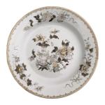 CHINE Compagnie des Indes Assiette ronde en porcelaine à décor en camaïeu noir et or de fleurs XVIIIème D.: 23 cm