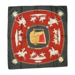Philippe LEDOUX / RYBALTCHENKO Vladimir pour HERMES Paris ( les ) amazones III Carré en soie imprimée, 1ére édition : 1967 90x90cm État: fil tiré, tache, décoloration
