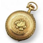 MONTRE de col en or jaune os à décor d'un trophée de musique, avec bélière poids brut 15 g