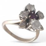 BAGUE en or gris sertie d'un rubis central et diamants poids 5.5 g TDD 51