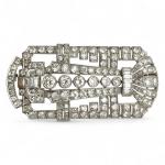 BROCHE plaque en or gris et platine sertie de diamants de taille ancienne, brillants et baguette poids 21.6 g dim 64x32 mm