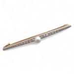BROCHE barrette or pavage de diamants et perle poids 4.5 g