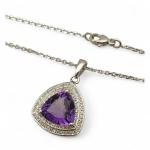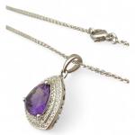 COLLIER chaine or gris (long 36 cm) et pendentif améthyste et petits diamants (diam 2 cm) poids 7 g