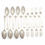 Suite de huit COUVERTS en argent, modèle uniplat violoné, chiffrés XVIIIème Poids: 952 gr