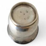 TIMBALE en argent, reposant sur une légère bâte, gravée XVIIIème Maitre orfèvre: SPG abonné à la marque H.: 6.5 cm Poids: 69 gr