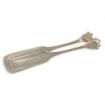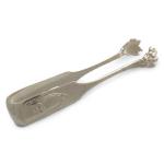 PINCE A SUCRE en argent à décor d'un médaillon sur fond amati, les prises en griffes Minerve. Orfèvre: E. MASSAT L.: 15 cm Poids: 60 gr (petite déchirure)