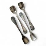 Suite de quatre PELLES A SEL en argent, modèle filets palmette, chiffrées Minerve L.: 7.7 cm Poids: 28 gr
