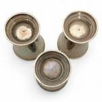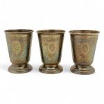 Suite de trois TIMBALES en argent reposant sur des piédouches, à décor gravé, chiffrées Minerve. Orfèvre: BONNESOEUR H.: 10.2 cm Poids: 340 gr
