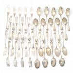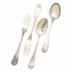 Suite de dix-huit COUVERTS en argent, modèle filets palmette Minerve. Orfèvre: Charles TIRBOUR (1897-1951) Poids: 2 kg 947
