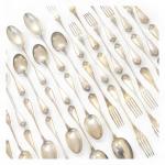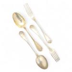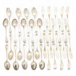 Suite de dix-huit COUVERTS A DESSERT en argent, modèle filets palmette Minerve. Orfèvre: Charles TIRBOUR (1897-1951) Poids: 1 kg 576