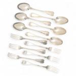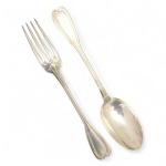Suite de six COUVERTS en argent, modèle filets à enroulements affrontés Minerve. Orfèvre: Charles TIRBOUR (1897-1951) Poids: 598 gr