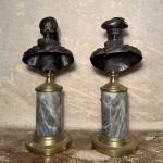 Paire de BUSTES en bronze patiné représentant Henri IV et Sully, reposant sur des colonnes en marbre, les montures en laiton H.: 21.5 cm