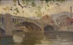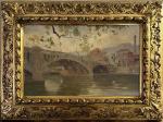 Ernest BAILLET (1853-1902) Le pont Huile sur panneau signée en bas à gauche 17.5 x 27 cm