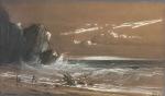 ECOLE FRANCAISE Le naufrage Dessin monogrammé en bas à droite 13.5 x 23.5 cm à vue