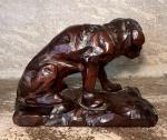 CHIEN en bois sculpté H.: 10 cm L.: 14.5 cm l.: 8.5 cm (fente)