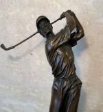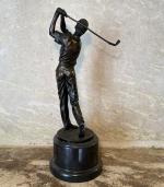BRONZE patiné représentant un joueur de golf, le socle en marbre noir Edition d'art H. totale: 38 cm