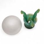 DAUM France Bucéphale Lampe de bureau, la base en pâte de verre surmontée de trois têtes de cheval supportant un globe, signé H.: 42 cm (électrifiée)