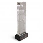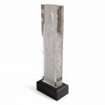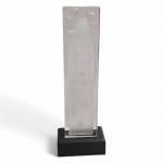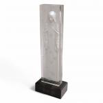 Vierge en verre gravé opalescent, signée, présentée sur un socle en bois